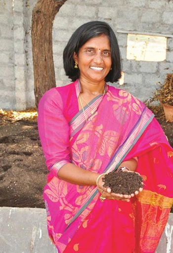 Due to a strong family support & her brother’s help in coming out of depression, she got to work in the fields hands-on and started her tryst with farming and taking care of the cattle. Providence got her in touch with Mrs Sudha Reddy who trained her about vermin-compost production and this led her to start her own production in her own farm .This had helped to boost her farm production and sell the compost in higher prices to others. With the profits earned she cleared her debts, bought two more acres of land , 50 cows for extra production of compost and is now a fully fledged farmer and dairy owner. She had seen the ups and downs of running a farm and has emerged stronger in her will to succeed and this has made her one of the successful and the only female farmer to reckon in the State of Telangana.