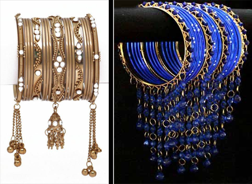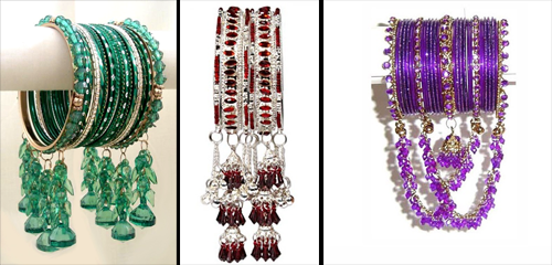 చేతికి గాజులు అందాన్నిస్తాయి. అలంకరణలో వాటిదే పైచేయి. రకరకాల రంగుల్లో మట్టిగాజుల నుంచి రాళ్ళ గాజుల దాకా సందర్భాన్ని బట్టి చేతికి చేరే గాజులు ఎప్పటికప్పుడు ట్రెండీగా మారిపోతుంటాయి. ఇప్పటి ట్రెండీ ఫ్యాషన్ ఏంటో తెలుసా... జుంకా గాజులు. ఈ గాజుల్ని మనకి నచ్చిన గాజులకి ఆ చివరా, ఈ చివరా బోర్డర్ గాజుల్లా వేసుకోవాలి. కిందకి వేలాడే జుంకాలతో అందంగా వుండే ఈ గాజులు రకరకాల రంగుల్లో, వెరైటీల్లో దొరుకుతాయి. పెళ్ళికి, పార్టీలకి కట్టుకునే చీర, లెహంగాలకి తగ్గట్టు చేతికి నిండుగా కనిపించే వీటిని వేసుకుంటే అటు సంప్రదాయంగా, ఇటు ట్రెండీగా కూడా వుంటుంది.