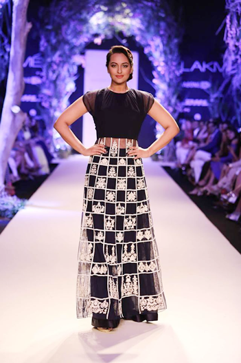 The opening of Lakme Fashion Week Summer Resort -2014 kick started with ‘Summer Affair’, a romantic collection by Manish Malhotra, in Mumbai. Sonakshi Sinha walked the ramp for Manish Malhotra in a mid-night blue ensemble which had a checked pattern with motifs on it. Speaking about his collection he said that “A Summer Affair’ is influenced by the romanticism that exists in today’s day and age… where layers and boundaries are surpassed… the young in love are distracted and are expressing their individuality. Summer 2014 for me is about the feelings and emotions this modern day romance evokes”.