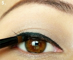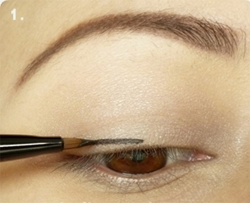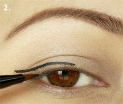 STEP 1: Draw a line starting at the middle of you upper lid, as close to your lashes as possible. This line determines the width of your eye liner, to create a dramatic look make this line thick, or create a thin line for a more subtle look.