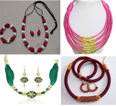 రంగు రంగుల దారాలు, ముచ్చట గొలిపే గొలుసులుగా మారి మగువ మెడని అలంకరిస్తే ఎలా వుంటుంది ? ఇదిగో ఇలా వుంటుంది... చూడండి ఎన్ని వెరైటీస్ వున్నాయో.... కొంచెం డిఫరెంట్ గా కనిపించాలి, మనదంటూ ఒక ఫ్యాషన్ స్టేట్ మెంట్ ఉండేలా చూసుకోవాలి అనుకునే అమ్మాయిలు ఈ థ్రెడ్ జ్యువలరీ సెలెక్ట్ చేసుకోవచ్చు. హెండ్లూం వాడ్రోబ్ కి పర్ఫెక్ట్ మాచింగ్ జ్యువలరీ ఇది. ఎన్నెనో రంగులు, ఎన్నెన్నో డిజైన్లు, చూడటానికి ఎంత బాగున్నాయో, వేసుకుంటే ఇంకా బావుంటాయి...ఒకసారి ట్రై చేయండి.