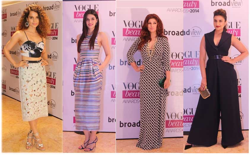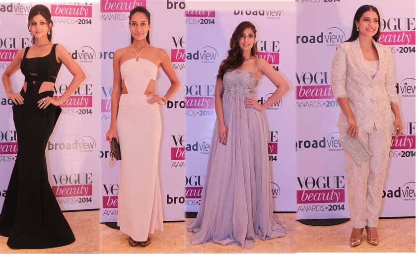The 2104 Vogue Beauty Awards, held at Taj Land's End in Mumbai was a star studded affair. The stars and models were dressed to the hilt in their designer clothes and with no scope for the fashion police to complain or criticize. The whos who of Bollywood including Shilpa Shetty, Lisa Haydon, Kajol, Ileana etc., and the modeling fraternity were there at the event. Except for Kangana who came in an outfit which didn’t quite seem like the right thing to be worn at Vogue, they all looked smashing in their Diors and Joshipuras.