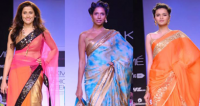 She used rich fabrics like malkha, Chanderi, kota, tulle, mulmul and satin on lightly structured silhouettes. The show which started with singer Shibani Kashyap singing on the ramp and wore a pink and white salwar with gold and silver appliqués.