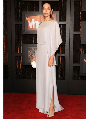 * We want to raid Angelina's closet — the dresses just keep getting better and better! She emitted an understated elegance in the most gorgeous draped ice-white Max Azria gown at VH1's 14th Annual Critics' Choice Awards.