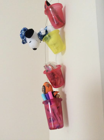 If you already have a wall hook or nail empty, hang it against the wall and start using these sippy cups to store tooth brushes, pencils, small toys or think creatively and make smart use of these cute storage helps !!!