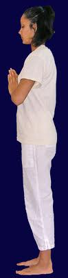 శ్వాసను వదులుతూ రెండు అర చేతులను నమస్కార భంగిమలో