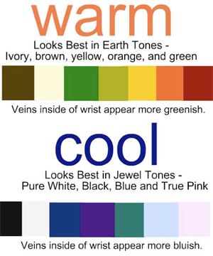Cool Skin Tone--Red, pink or bluish undertones: Rich colors including black, navy, red, hot pink, emerald green, royal blue or dark purple are the best shades for this skin tone.